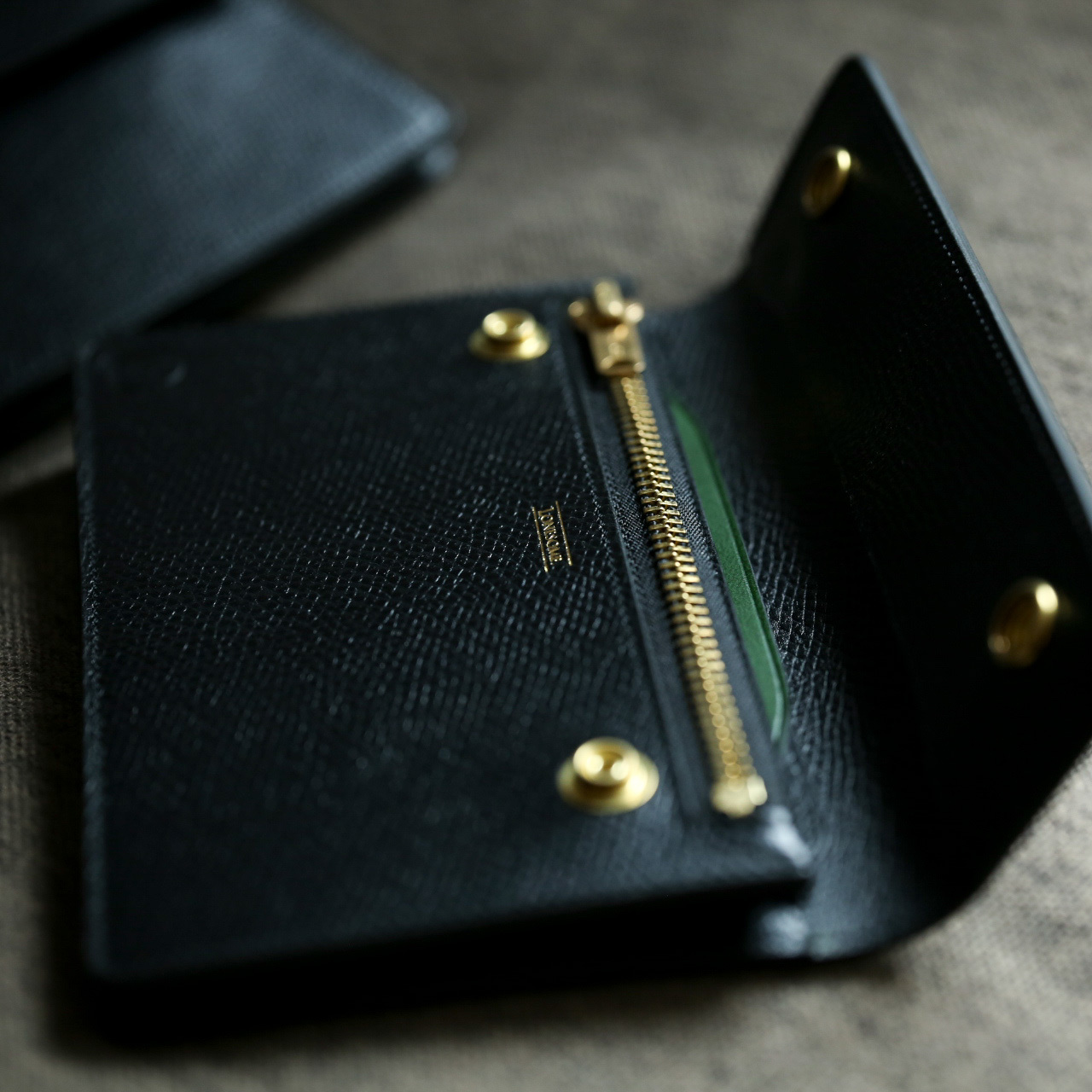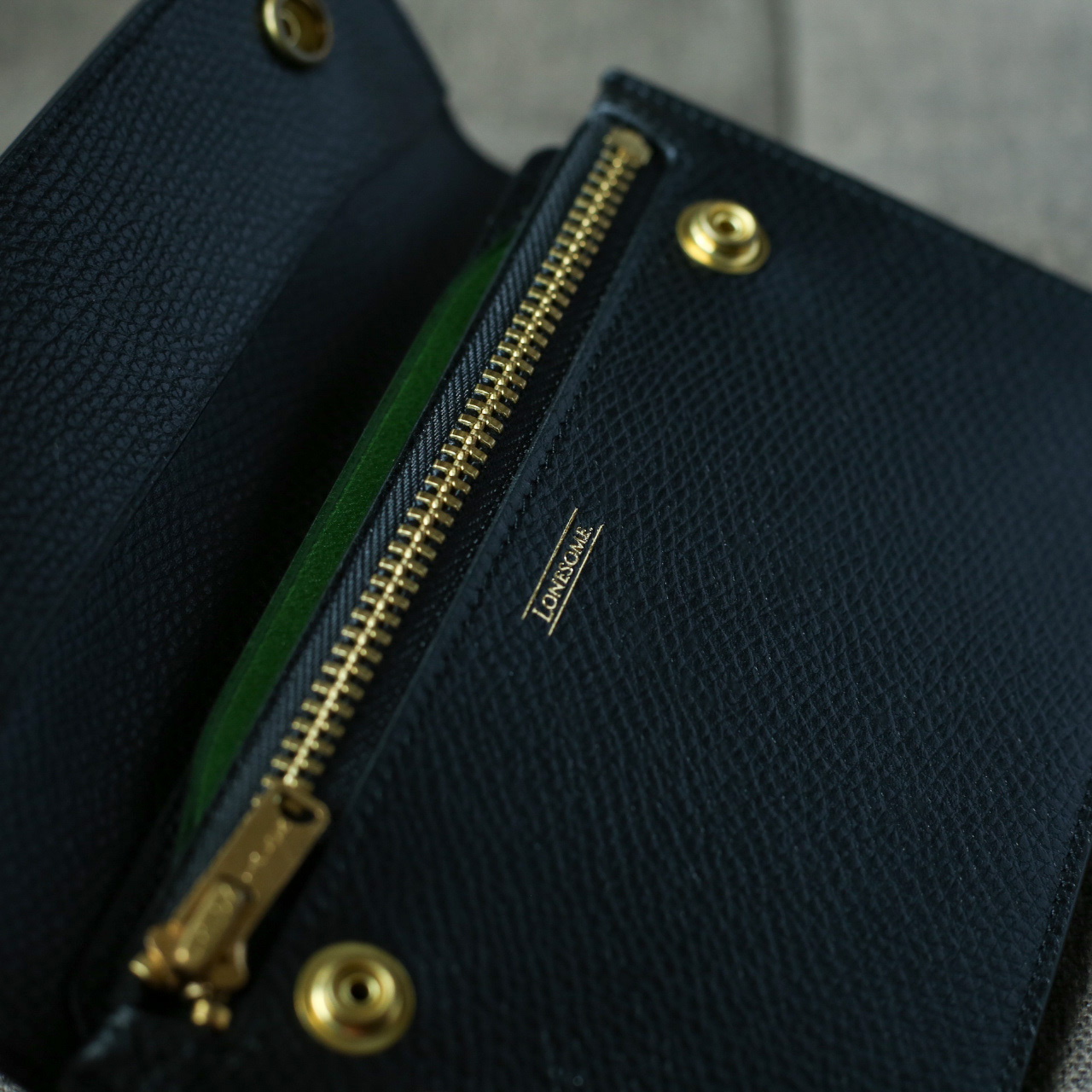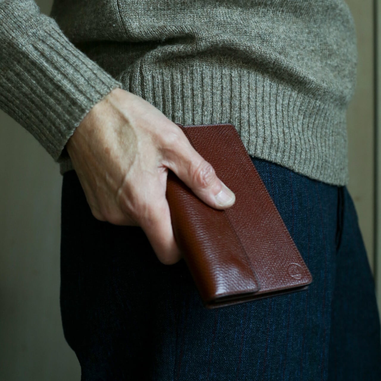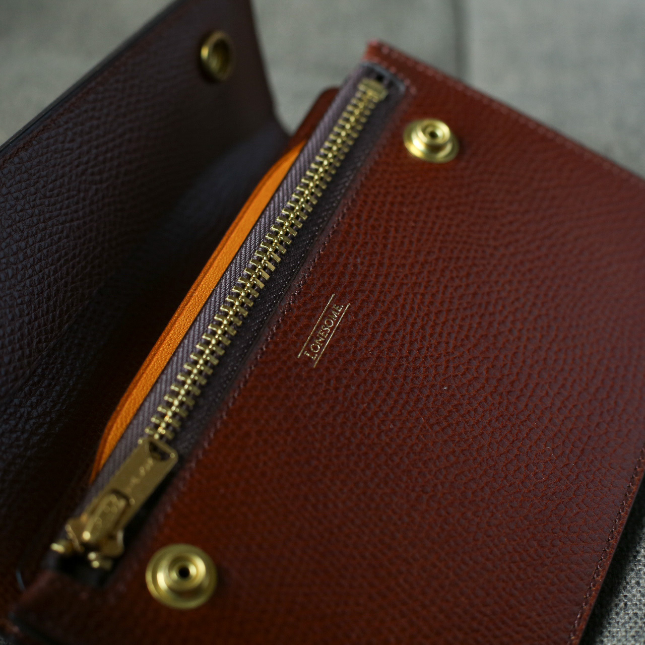 クラシックなトラッカーウォレットのフォルムはそのままに、上質な型押しフレンチカーフで薄く仕立てた大人のミドルウォレットです。
