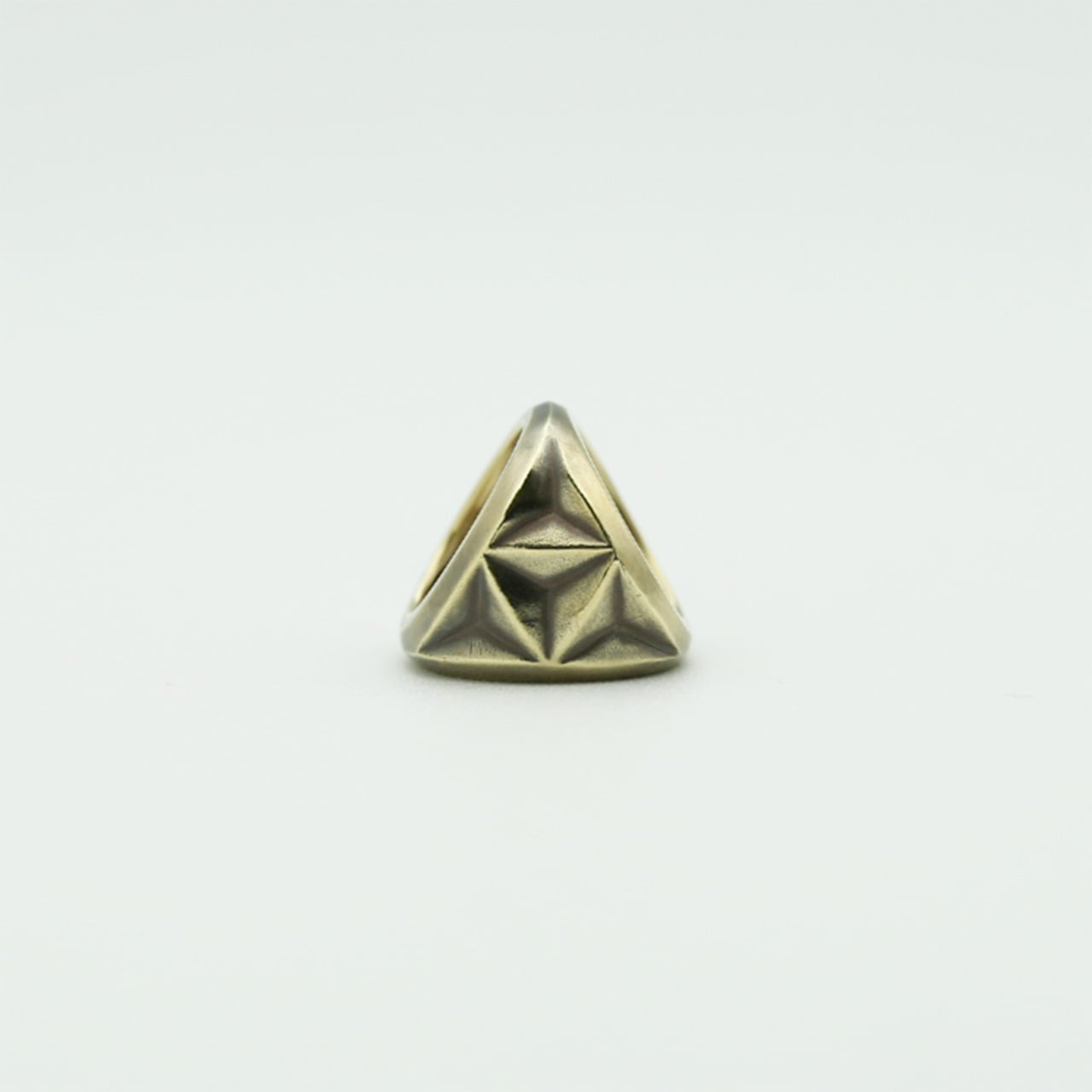 The other side is engraved in an art deco style with tetrahedrons laid out.